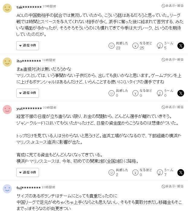 还有不少球迷感慨:当年在亚冠对中国球队踢得游刃有余,早就想到会有这么一天被中国球队看上,本来还想着他已经好不容易适应了日本联赛节奏,新赛季就能爆发,结果却走了。